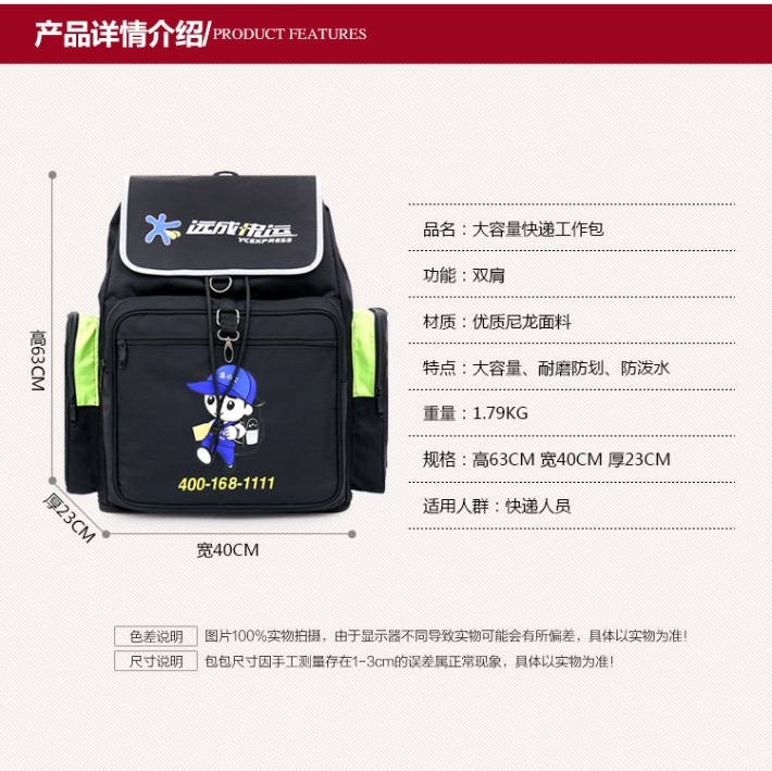 申通圓通順豐快遞背包中通韻達雙肩包大容量郵遞速遞工具包