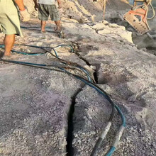 液壓分裂機(jī)破石機(jī)愚公斧柴油巖石劈裂機(jī) 挖改鉆鉆裂一體機(jī) 巖石解體劈裂棒施工方法:1. 用潛孔鉆機(jī)先在巖石打孔,鉆孔直徑180mm,鉆孔深度1000mm,鉆孔間距為1000-1500mm。2. 按設(shè)備的使用說(shuō)明將液壓劈裂棒放入鉆好的孔內(nèi),開動(dòng)設(shè)備,只需要40秒鐘,就會(huì)聽到巖石被劈裂棒脹裂的聲音。當(dāng)劈裂棒完成分裂后,操作設(shè)備將劈裂棒活塞收回,這樣整個(gè)分裂巖石的過(guò)程輕而易舉的完成了。3.分裂完后,再利用輔助工具或挖機(jī)將裂開的巖石分離下來(lái)。
