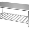 1、面板采用不銹鋼磨砂貼塑板厚1.2mm;2、 側(cè)層板厚1.0mm;3、 上層臺面下、四周及中間都配有加強(qiáng)筋;底層臺面下中間也配有加強(qiáng)筋;4、 腳柱為38*38不銹鋼方管;5、 四腳采用不銹鋼子彈式升降調(diào)節(jié)腳。上層表面平整,四腳堅固,承壓能力強(qiáng),可在其面上剁切食物,不易變型;下層有足大空間,可隨意存放備用物品。