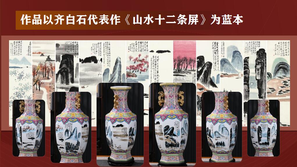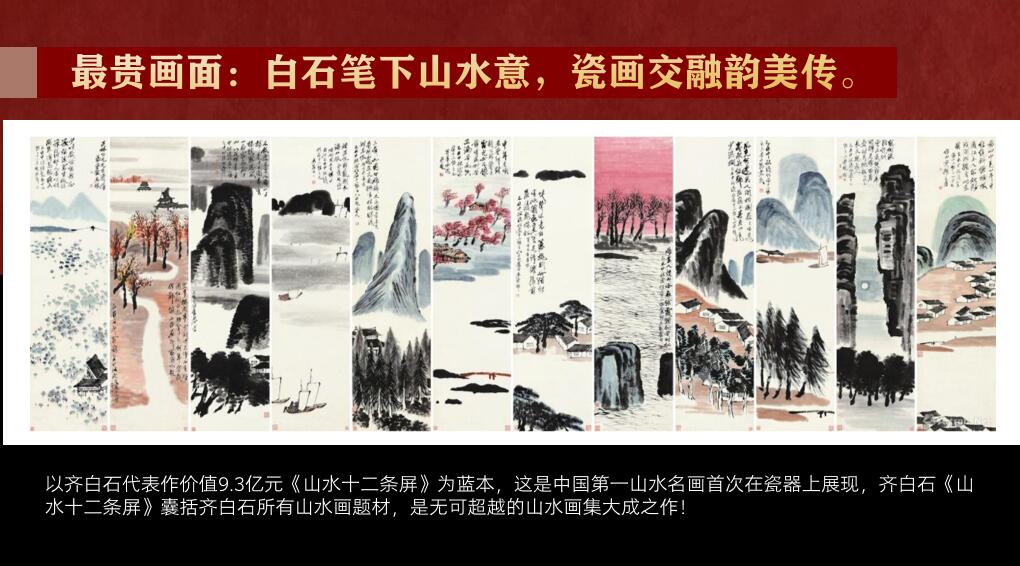 齊白石誕辰160周年獻(xiàn)禮之陶瓷美術(shù)作作品以齊白石代表作《山水十二條屏》為藍(lán)本打造