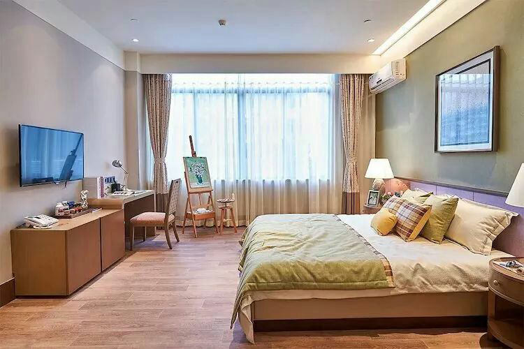 用心開辟休閑天地從長者入住中心的一刻起,中心便是長者安心的家。為了給長者提供溫馨的家庭港灣,中心向幫助2200多家醫(yī)院及養(yǎng)老機構(gòu)設(shè)計的日本志賀設(shè)計“取經(jīng)”,在房間設(shè)計講究細節(jié)、考慮周全,細心凝煉出23處適老化設(shè)計,貼心呵護長者的日常起居。房間類型多種多樣,有單間 雙人間 三人間 四人間和套間。五安養(yǎng)套間本中心擁有 241 個房間,600張床位,內(nèi)設(shè)單人房、雙人房、三人房以及四人房,適合不同長者入住需求。本中心安養(yǎng)套間由日本志賀特別針對長者入住需求設(shè)計,配置單人間、雙人間、三人間及四人間,為確保長者入住安全及舒適設(shè)置不少于23種適老化細節(jié)。