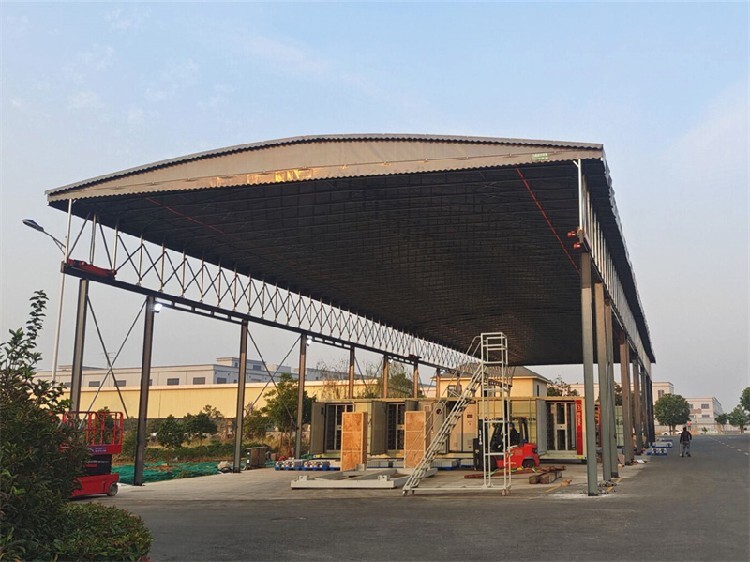 產(chǎn)品名:電動(dòng)伸縮雨蓬,倉庫推拉棚,物流推拉棚