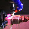 將玉料用膠水固定模具上,模具固定在機(jī)器的工作臺上,通過機(jī)器上的主軸電機(jī),裝上鋒利且硬度高的刀具,用刀頭旋轉(zhuǎn)的雕刻方法,每一步每一層的往下雕刻,雕刻過程中要施加冷卻措施,保護(hù)刀具和玉石。是開輪廓,然后是粗加工,后是精加工。
