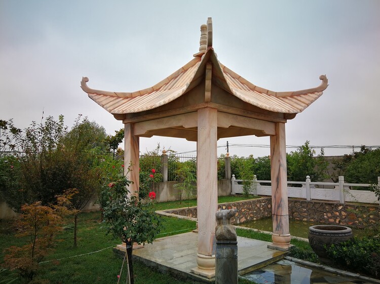 明,清時,石材的特征漸為,構(gòu)造方法上相對簡化,出檐較短,形成質(zhì)樸,淳厚,粗曠的風(fēng)格。供人們乘涼,休息,美化環(huán)境,通常用于大型工程。如小區(qū)規(guī)劃,景觀假設(shè)等。